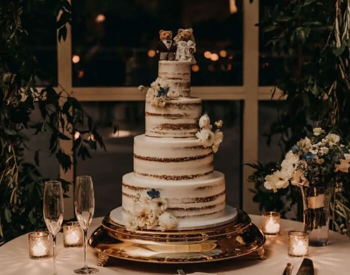 Whether you opt for a simple naked cake adorned with fresh berries and edible flowers or a towering multi-tiered masterpiece complete with intricate piping and fondant details, a forest wedding cake is sure to be a showstopper that will leave your guests in awe. So let’s add a touch of magic to your dessert table with a truly one-of-a-kind forest wedding cake.